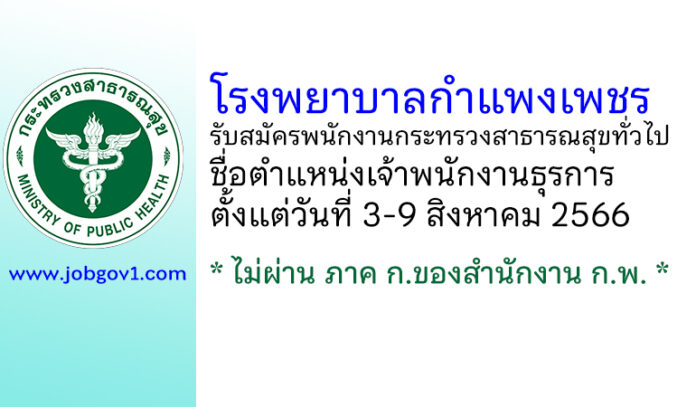 โรงพยาบาลกำแพงเพชร รับสมัครพนักงานกระทรวงสาธารณสุขทั่วไป ตำแหน่งเจ้าพนักงานธุรการ ตั้งแต่วันที่ 3-9 สิงหาคม 2566