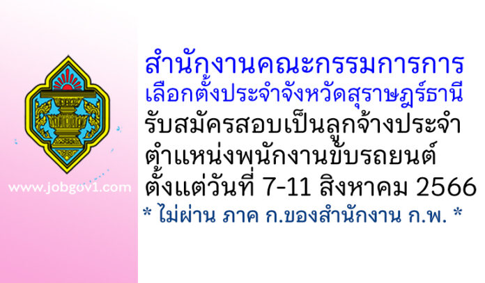 สำนักงานคณะกรรมการการเลือกตั้งประจำจังหวัดสุราษฎร์ธานี รับสมัครลูกจ้างประจำ ตำแหน่งพนักงานขับรถยนต์ ตั้งแต่วันที่ 7-11 สิงหาคม 2566