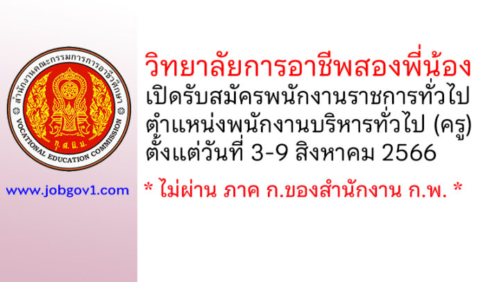 วิทยาลัยการอาชีพสองพี่น้อง รับสมัครพนักงานราชการทั่วไป ตำแหน่งพนักงานบริหารทั่วไป (ครู) ตั้งแต่วันที่ 3-9 สิงหาคม 2566