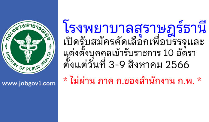 โรงพยาบาลสุราษฎร์ธานี รับสมัครคัดเลือกเพื่อบรรจุและแต่งตั้งบุคคลเข้ารับราชการ 10 อัตรา ตั้งแต่วันที่ 3-9 สิงหาคม 2566