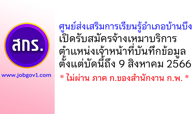 ศูนย์ส่งเสริมการเรียนรู้อำเภอบ้านบึง รับสมัครจ้างเหมาบริการ ตำแหน่งเจ้าหน้าที่บันทึกข้อมูล ตั้งแต่บัดนี้ถึง 9 สิงหาคม 2566