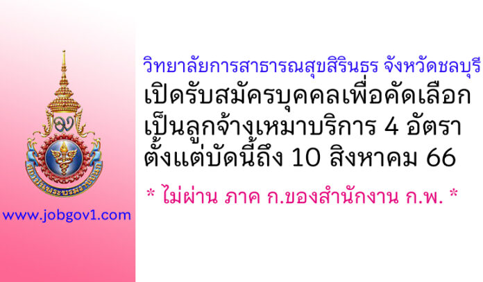 วิทยาลัยการสาธารณสุขสิรินธร จังหวัดชลบุรี รับสมัครบุคคลเพื่อคัดเลือกเป็นลูกจ้างเหมาบริการ 4 อัตรา ตั้งแต่บัดนี้ถึง 10 สิงหาคม 2566