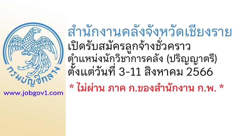 สำนักงานคลังจังหวัดเชียงราย รับสมัครลูกจ้างชั่วคราว ตำแหน่งนักวิชาการคลัง ตั้งแต่วันที่ 3-11 สิงหาคม 2566