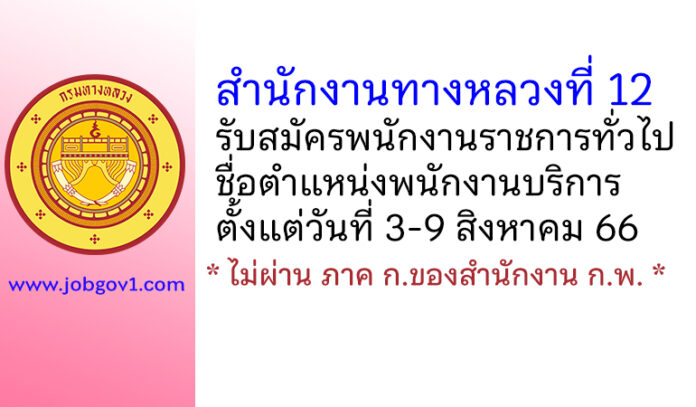 สำนักงานทางหลวงที่ 12 รับสมัครพนักงานราชการทั่วไป ตำแหน่งพนักงานบริการ ตั้งแต่วันที่ 3-9 สิงหาคม 2566