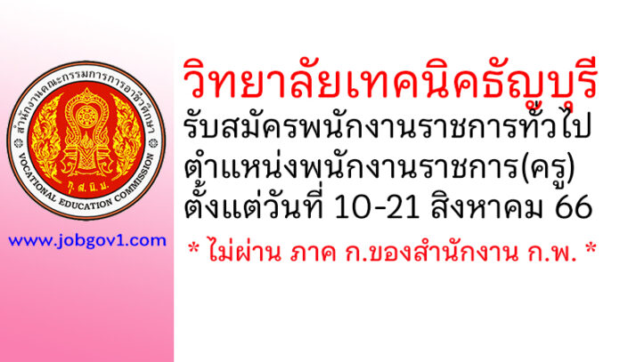 วิทยาลัยเทคนิคธัญบุรี รับสมัครพนักงานราชการทั่วไป ตำแหน่งพนักงานราชการ(ครู) ตั้งแต่วันที่ 10-21 สิงหาคม 2566