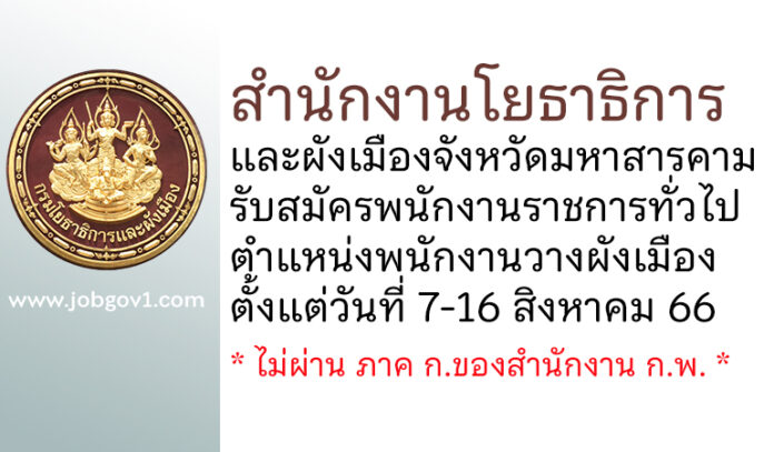 สำนักงานโยธาธิการและผังเมืองจังหวัดมหาสารคาม รับสมัครพนักงานราชการทั่วไป ตำแหน่งพนักงานวางผังเมือง ตั้งแต่วันที่ 7-16 สิงหาคม 2566