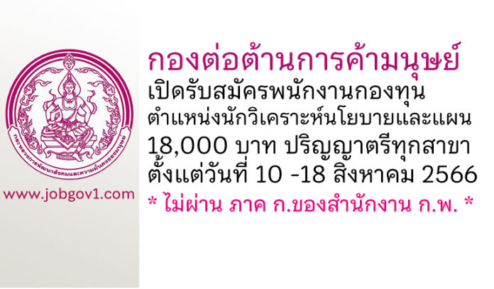 กองต่อต้านการค้ามนุษย์ รับสมัครพนักงานกองทุน ตำแหน่งนักวิเคราะห์นโยบายและแผน ตั้งแต่วันที่ 10 -18 สิงหาคม 2566