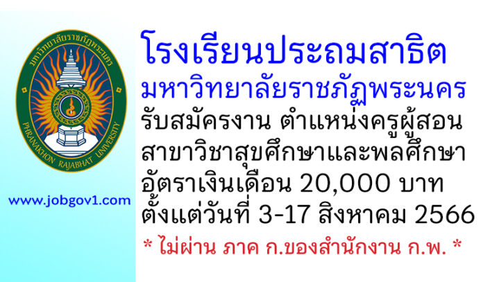 โรงเรียนประถมสาธิตมหาวิทยาลัยราชภัฏพระนคร รับสมัครครูผู้สอนสาขาวิชาสุขศึกษาและพลศึกษา ตั้งแต่วันที่ 3-17 สิงหาคม 2566