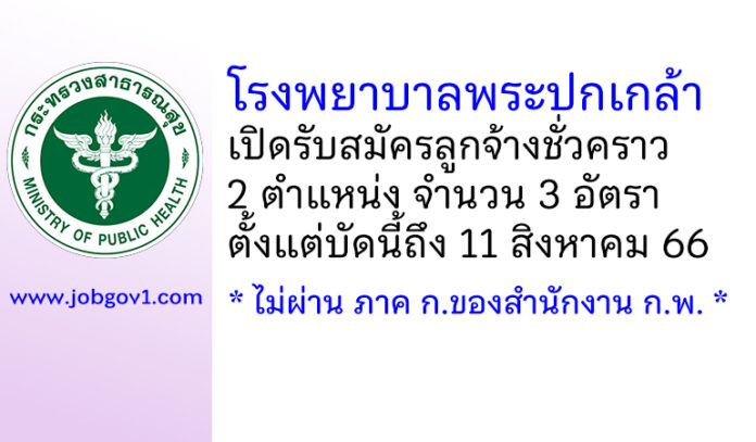 โรงพยาบาลพระปกเกล้า รับสมัครลูกจ้างชั่วคราว 3 อัตรา ตั้งแต่บัดนี้ถึง 11 สิงหาคม 2566