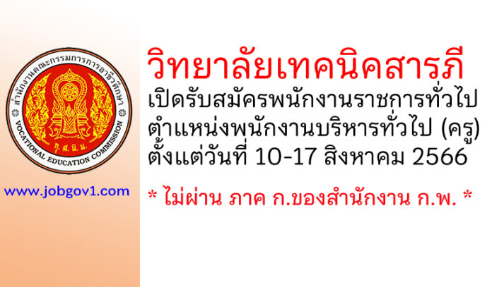 วิทยาลัยเทคนิคสารภี รับสมัครพนักงานราชการทั่วไป ตำแหน่งพนักงานบริหารทั่วไป (ครู) ตั้งแต่วันที่ 10-17 สิงหาคม 2566