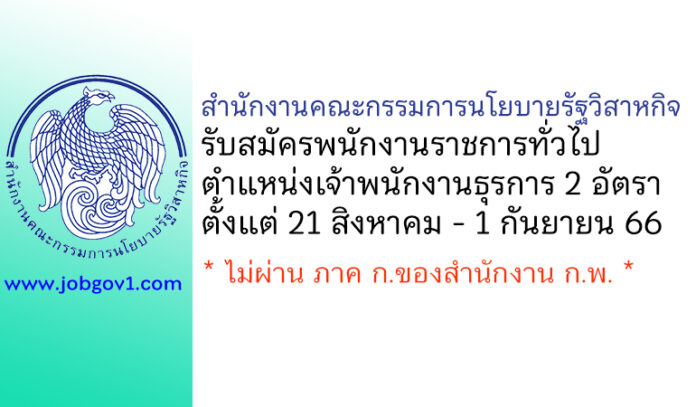 สำนักงานคณะกรรมการนโยบายรัฐวิสาหกิจ รับสมัครพนักงานราชการทั่วไป ตำแหน่งเจ้าพนักงานธุรการ 2 อัตรา ตั้งแต่ 21 สิงหาคม – 1 กันยายน 2566
