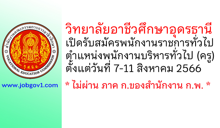 วิทยาลัยอาชีวศึกษาอุดรธานี รับสมัครพนักงานราชการทั่วไป ตำแหน่งพนักงานบริหารทั่วไป (ครู) ตั้งแต่วันที่ 7-11 สิงหาคม 2566