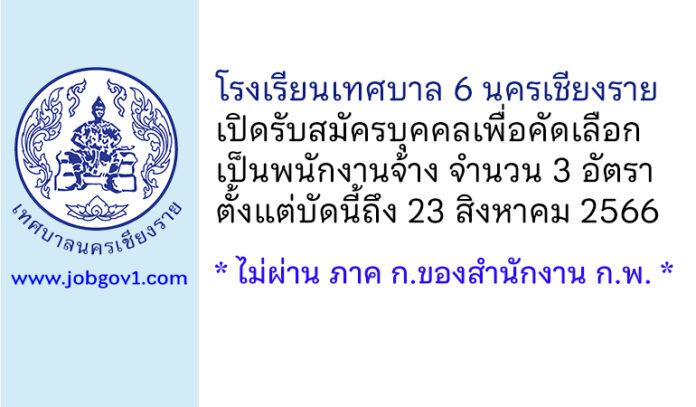 โรงเรียนเทศบาล 6 นครเชียงราย รับสมัครบุคคลเพื่อคัดเลือกเป็นพนักงานจ้าง 3 อัตรา ตั้งแต่บัดนี้ถึง 23 สิงหาคม 2566