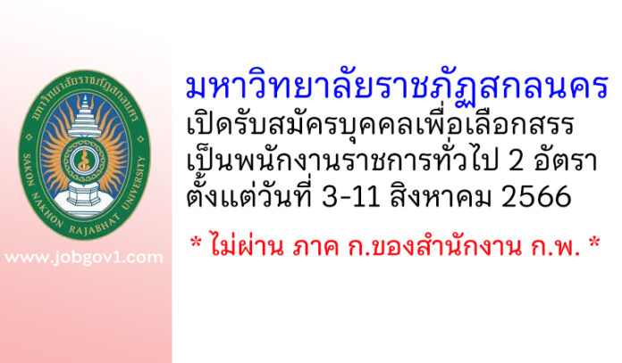 มหาวิทยาลัยราชภัฏสกลนคร รับสมัครบุคคลเพื่อเลือกสรรเป็นพนักงานราชการทั่วไป 2 อัตรา ตั้งแต่วันที่ 3-11 สิงหาคม 2566