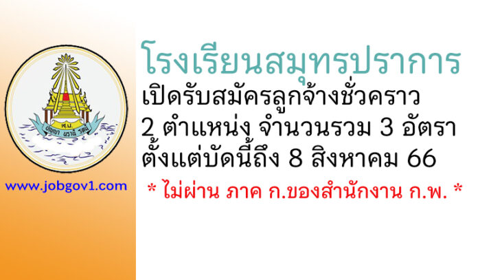 โรงเรียนสมุทรปราการ รับสมัครลูกจ้างชั่วคราว 3 อัตรา ตั้งแต่บัดนี้ถึง 8 สิงหาคม 2566
