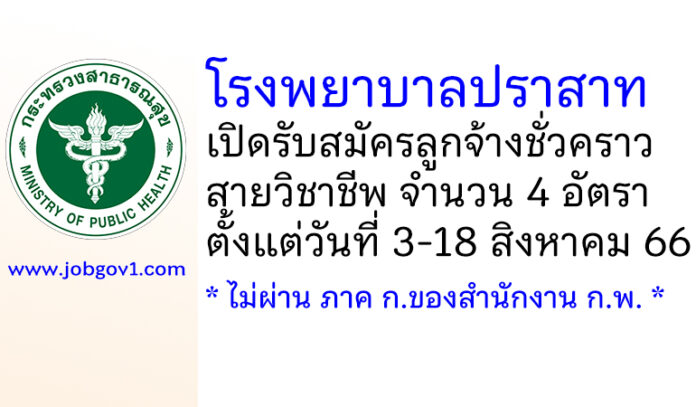 โรงพยาบาลปราสาท รับสมัครลูกจ้างชั่วคราว 4 อัตรา ตั้งแต่วันที่ 3-18 สิงหาคม 2566