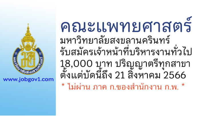คณะแพทยศาสตร์ มหาวิทยาลัยสงขลานครินทร์ รับสมัครตำแหน่งเจ้าหน้าที่บริหารงานทั่วไป ตั้งแต่บัดนี้ถึง 21 สิงหาคม 2566