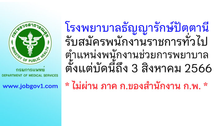 โรงพยาบาลธัญญารักษ์ปัตตานี รับสมัครพนักงานราชการทั่วไป ตำแหน่งพนักงานช่วยการพยาบาล ตั้งแต่บัดนี้ถึง 3 สิงหาคม 2566