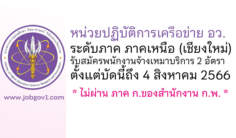 หน่วยปฏิบัติการเครือข่าย อว. ระดับภาค ภาคเหนือ รับสมัครพนักงานจ้างเหมาบริการ 2 อัตรา ตั้งแต่บัดนี้ถึง 4 สิงหาคม 2566