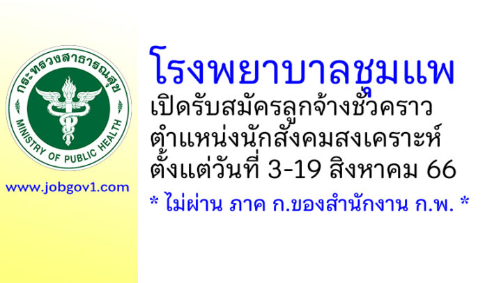 โรงพยาบาลชุมแพ รับสมัครลูกจ้างชั่วคราว ตำแหน่งนักสังคมสงเคราะห์ ตั้งแต่วันที่ 3-19 สิงหาคม 2566