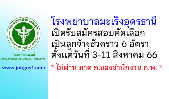 โรงพยาบาลมะเร็งอุดรธานี รับสมัครสอบคัดเลือกเป็นลูกจ้างชั่วคราว 6 อัตรา