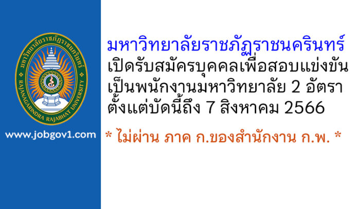 มหาวิทยาลัยราชภัฏราชนครินทร์ รับสมัครบุคคลเพื่อสอบแข่งขันเป็นพนักงานมหาวิทยาลัย 2 อัตรา ตั้งแต่บัดนี้ถึง 7 สิงหาคม 2566
