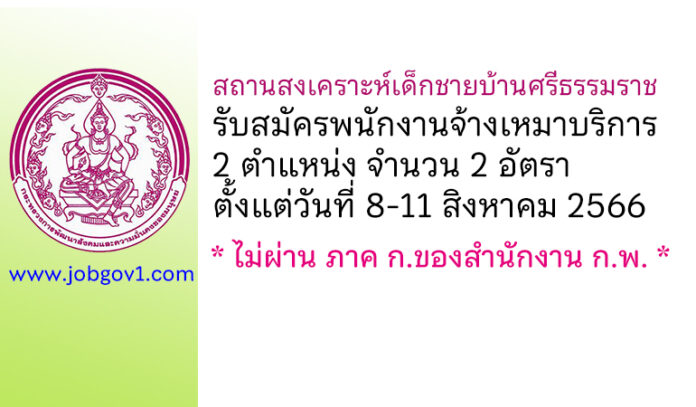 สถานสงเคราะห์เด็กชายบ้านศรีธรรมราช รับสมัครพนักงานจ้างเหมาบริการ 2 อัตรา ตั้งแต่วันที่ 8-11 สิงหาคม 2566