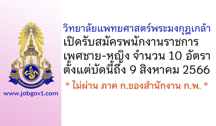 วิทยาลัยแพทยศาสตร์พระมงกุฎเกล้า รับสมัครพนักงานราชการ 10 อัตรา ตั้งแต่บัดนี้ถึง 9 สิงหาคม 2566