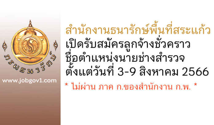 สำนักงานธนารักษ์พื้นที่สระแก้ว รับสมัครลูกจ้างชั่วคราว ตำแหน่งนายช่างสำรวจ ตั้งแต่วันที่ 3-9 สิงหาคม 2566