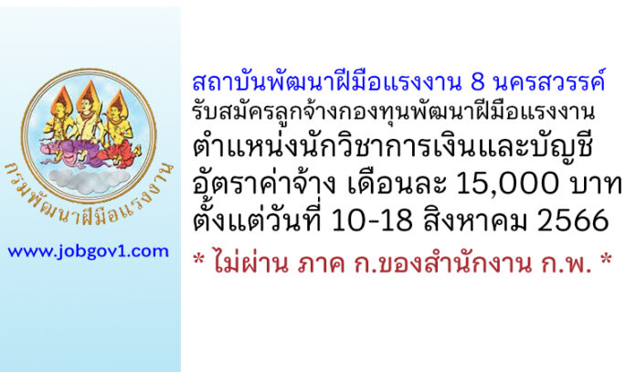 สถาบันพัฒนาฝีมือแรงงาน 8 นครสวรรค์ รับสมัครลูกจ้างกองทุนพัฒนาฝีมือแรงงาน ตำแหน่งนักวิชาการเงินและบัญชี ตั้งแต่วันที่ 10-18 สิงหาคม 2566