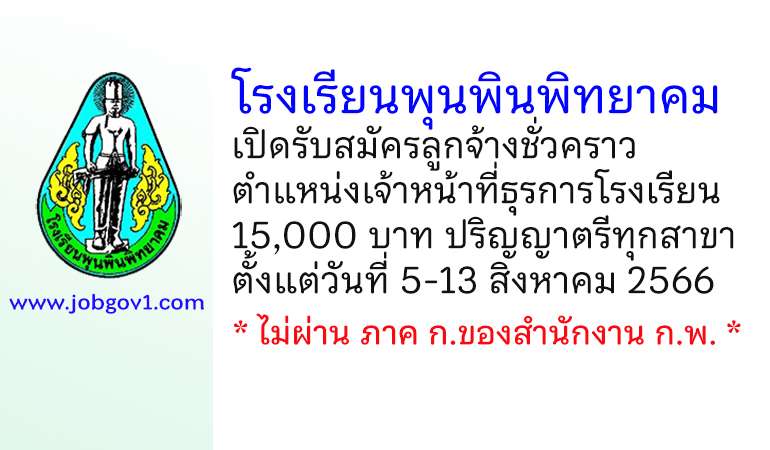 โรงเรียนพุนพินพิทยาคม รับสมัครลูกจ้างชั่วคราว ตำแหน่งเจ้าหน้าที่ธุรการโรงเรียน ตั้งแต่วันที่ 5-13 สิงหาคม 2566