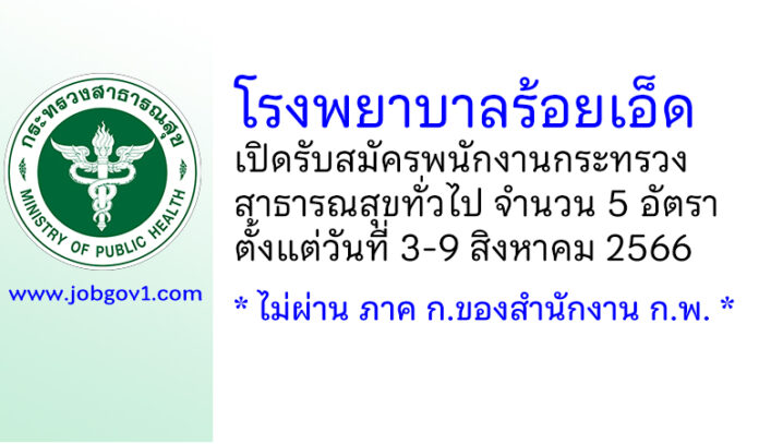 โรงพยาบาลร้อยเอ็ด รับสมัครพนักงานกระทรวงสาธารณสุขทั่วไป 5 อัตรา ตั้งแต่วันที่ 3-9 สิงหาคม 2566