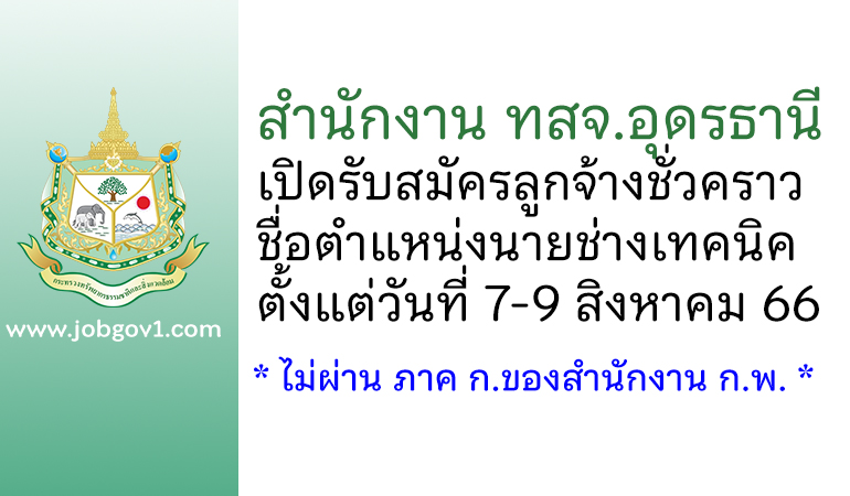 สำนักงาน ทสจ.อุดรธานี รับสมัครลูกจ้างชั่วคราว ตำแหน่งนายช่างเทคนิค ตั้งแต่วันที่ 7-9 สิงหาคม 2566