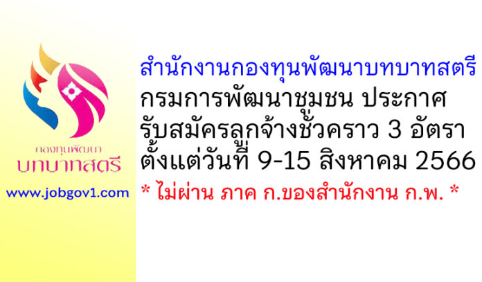 สำนักงานกองทุนพัฒนาบทบาทสตรี กรมการพัฒนาชุมชน รับสมัครลูกจ้างชั่วคราว 3 อัตรา ตั้งแต่วันที่ 9-15 สิงหาคม 2566