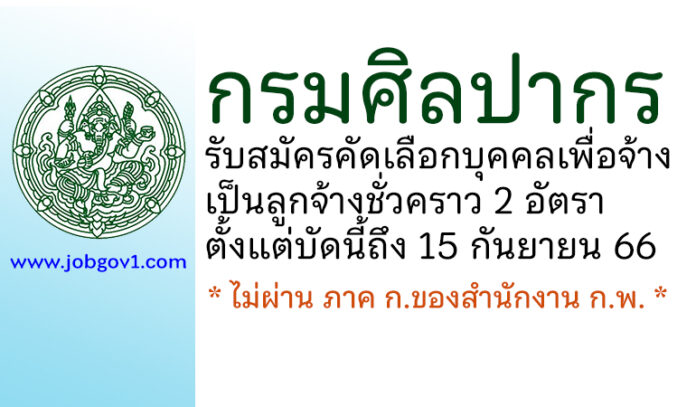 กรมศิลปากร รับสมัครคัดเลือกบุคคลเพื่อจ้างเป็นลูกจ้างชั่วคราว 2 อัตรา ตั้งแต่บัดนี้ถึง 15 กันยายน 2566