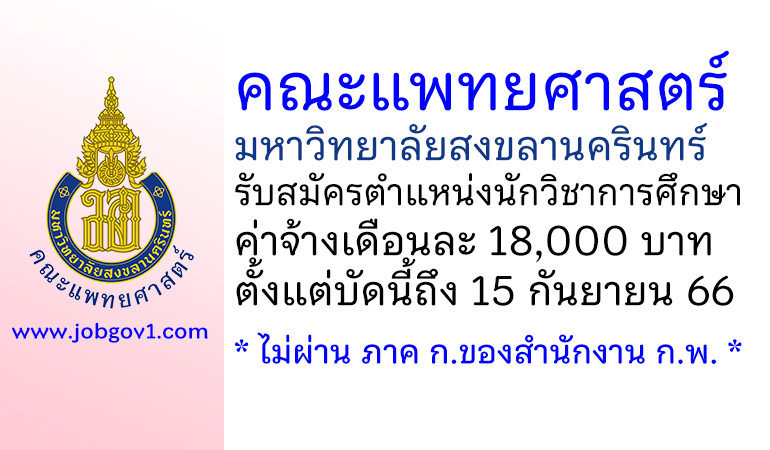 คณะแพทยศาสตร์ มหาวิทยาลัยสงขลานครินทร์ รับสมัครตำแหน่งนักวิชาการศึกษา ตั้งแต่บัดนี้ถึง 15 กันยายน 2566