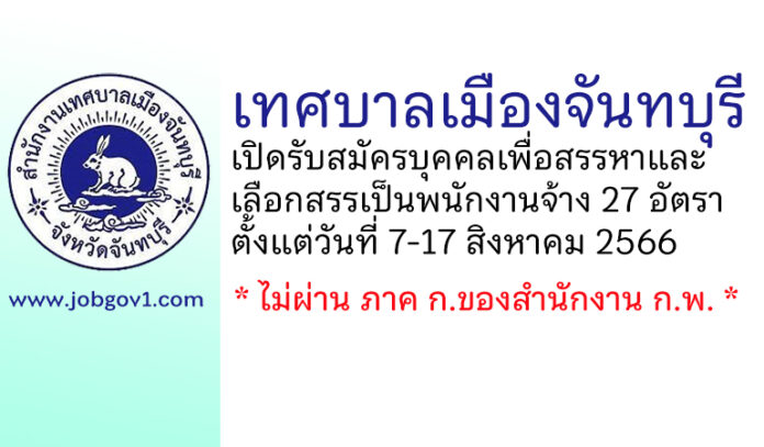 เทศบาลเมืองจันทบุรี รับสมัครบุคคลเพื่อสรรหาและเลือกสรรเป็นพนักงานจ้าง 27 อัตรา ตั้งแต่วันที่ 7-17 สิงหาคม 2566