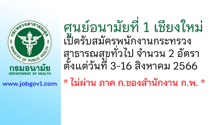 ศูนย์อนามัยที่ 1 เชียงใหม่ รับสมัครพนักงานกระทรวงสาธารณสุขทั่วไป 2 อัตรา ตั้งแต่วันที่ 3-16 สิงหาคม 2566