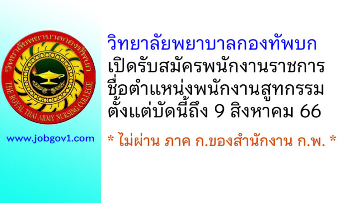 วิทยาลัยพยาบาลกองทัพบก รับสมัครพนักงานราชการ ตำแหน่งพนักงานสูทกรรม ตั้งแต่บัดนี้ถึง 9 สิงหาคม 2566