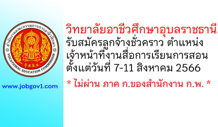 วิทยาลัยอาชีวศึกษาอุบลราชธานี รับสมัครลูกจ้างชั่วคราว ตำแหน่งเจ้าหน้าที่งานสื่อการเรียนการสอน ตั้งแต่วันที่ 7-11 สิงหาคม 2566