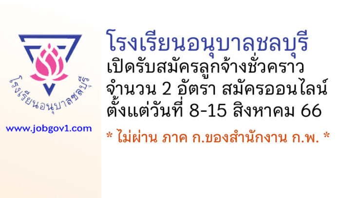 โรงเรียนอนุบาลชลบุรี รับสมัครลูกจ้างชั่วคราว จำนวน 2 อัตรา ตั้งแต่วันที่ 8-15 สิงหาคม 2566