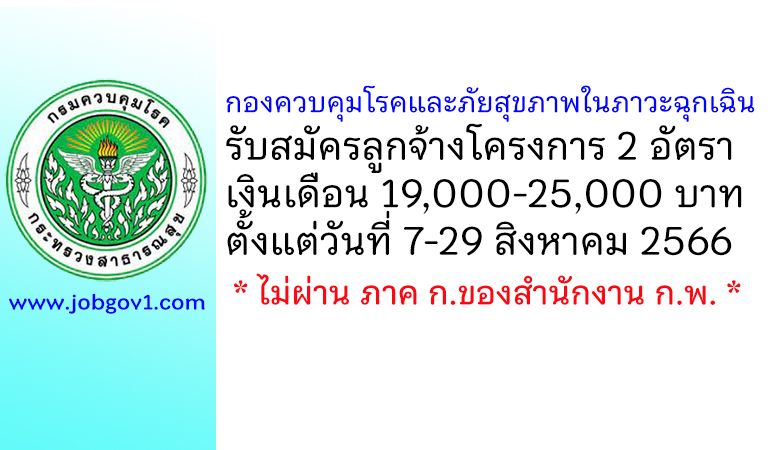 กองควบคุมโรคและภัยสุขภาพในภาวะฉุกเฉิน รับสมัครลูกจ้างโครงการ 2 อัตรา ตั้งแต่วันที่ 7-29 สิงหาคม 2566