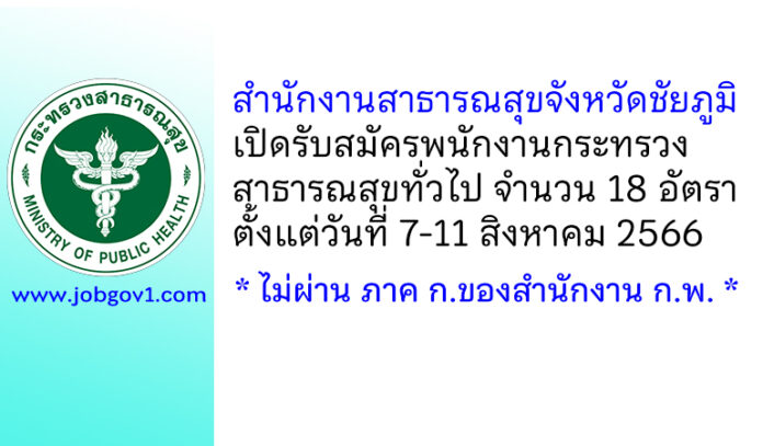 สำนักงานสาธารณสุขจังหวัดชัยภูมิ รับสมัครพนักงานกระทรวงสาธารณสุขทั่วไป 18 อัตรา ตั้งแต่วันที่ 7-11 สิงหาคม 2566