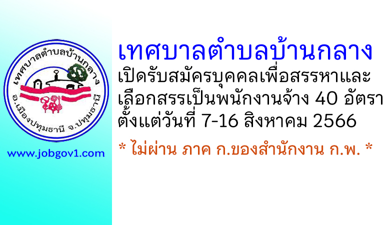 เทศบาลตำบลบ้านกลาง รับสมัครบุคคลเพื่อสรรหาและเลือกสรรเป็นพนักงานจ้าง 40 อัตรา ตั้งแต่วันที่ 7-16 สิงหาคม 2566