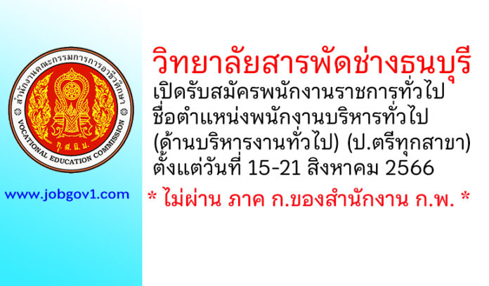 วิทยาลัยสารพัดช่างธนบุรี รับสมัครพนักงานราชการทั่วไป ตำแหน่งพนักงานบริหารทั่วไป (ด้านบริหารงานทั่วไป) ตั้งแต่วันที่ 15-21 สิงหาคม 2566