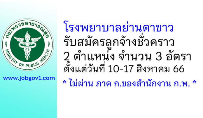 โรงพยาบาลย่านตาขาว รับสมัครลูกจ้างชั่วคราว 2 ตำแหน่ง 3 อัตรา ตั้งแต่วันที่ 10-17 สิงหาคม 2566