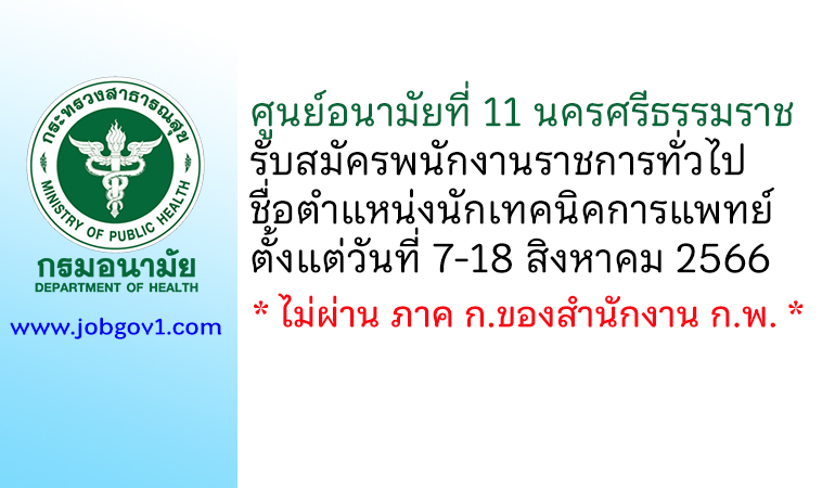 ศูนย์อนามัยที่ 11 นครศรีธรรมราช รับสมัครพนักงานราชการทั่วไป ตำแหน่งนักเทคนิคการแพทย์ ตั้งแต่วันที่ 7-18 สิงหาคม 2566