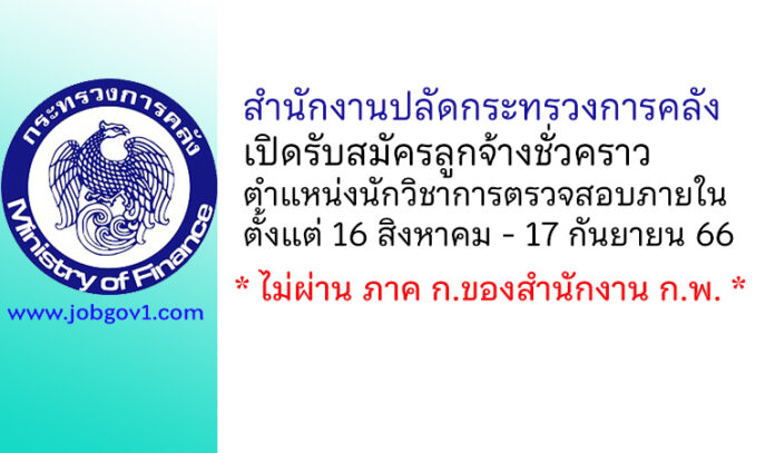 สำนักงานปลัดกระทรวงการคลัง รับสมัครลูกจ้างชั่วคราว ตำแหน่งนักวิชาการตรวจสอบภายใน ตั้งแต่ 16 สิงหาคม – 17 กันยายน 2566