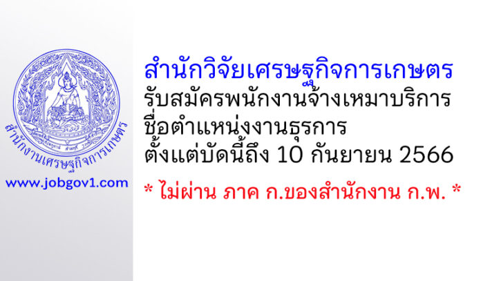 สำนักวิจัยเศรษฐกิจการเกษตร รับสมัครพนักงานจ้างเหมาบริการ ตำแหน่งงานธุรการ ตั้งแต่บัดนี้ถึง 10 กันยายน 2566