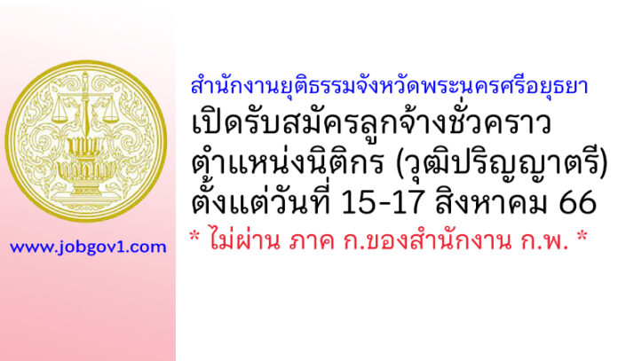 สำนักงานยุติธรรมจังหวัดพระนครศรีอยุธยา รับสมัครลูกจ้างชั่วคราว ตำแหน่งนิติกร ตั้งแต่วันที่ 15-17 สิงหาคม 2566